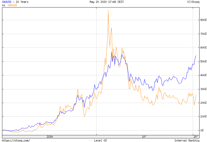 The recent divergence of silver and gold prices is also well illustrated by the relative strength chart, which at one point fired to historically high levels under 130 silver units per gold unit. Over the past few decades, this indicator fluctuated in the range of about 40-100. It can, therefore, be assumed that it will ultimately target at least the average of 60-70 XAU / XAG. The price of silver can, therefore, increase much faster than gold.