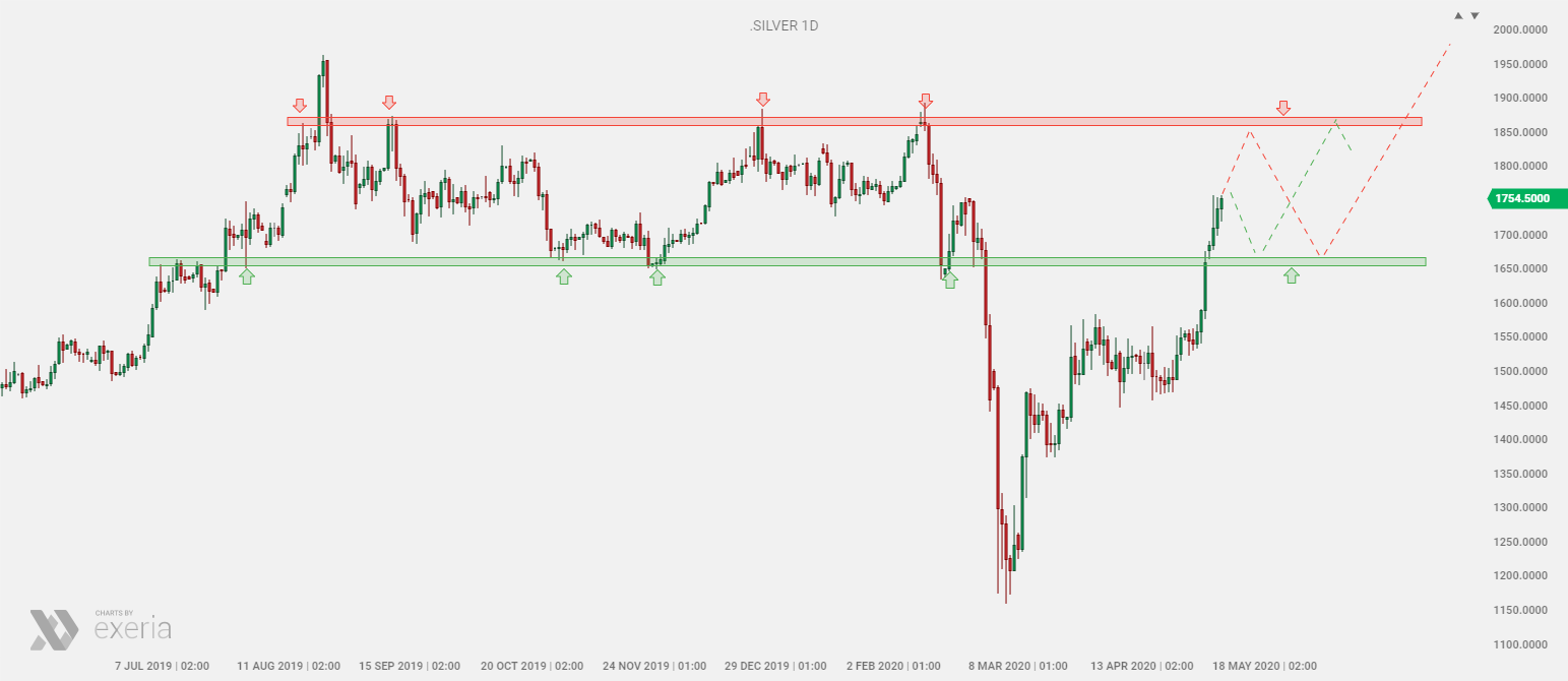 The currently visible decline in inflation is temporary. It should be remembered that inflation depends on both the money supply and the pace of its circulation. Due to global lockdown, it was the latter element that caused inflation to lose dynamics. However, when the economy is completely resumed and the money supply remains at its current level, inflation should noticeably accelerate, increasing the flight from cash to tangible assets, including precious metals and commodities. Silver in this environment will get a strong, positive stimulus.
