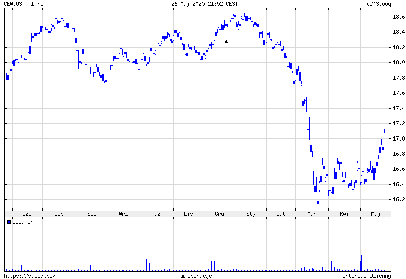 Minione dni zdecydowanie należą do złotego. Nie jest to jednak jakiś wyjątek, bowiem poprawa nastrojów rozlała się także po pozostałych rynkach wschodzących, umacniając ich waluty. Dobrze pokazuje to chociażby wykres WisdomTree Emerging Currency Strategy Fund, czyli ETF’u dającego ekspozycję na waluty rynków wschodzących (ticker CEW), który także ruszył w minionych dniach do odreagowania.